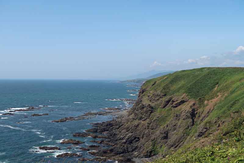 襟裳岬は日高山脈が海に没するような感じですが、断崖絶壁の部分もあり、実際は岬の東側にあたります。