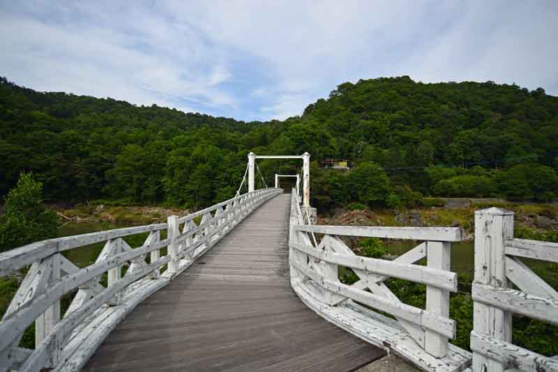 昔はここを渡るのに急流で事故も多かったようですが、向かいに函館本線が通り神居古潭駅ができたので両岸をつなぐ橋がかけられました(最初は明治34年、この橋は昭和13年)。