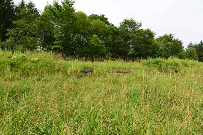 北母子里駅の跡はほとんど残ってなく駅のプラットホームの一角が見えるだけです。 近くに携帯電話の設備があるのでそれを目指していけば発見できると思います。