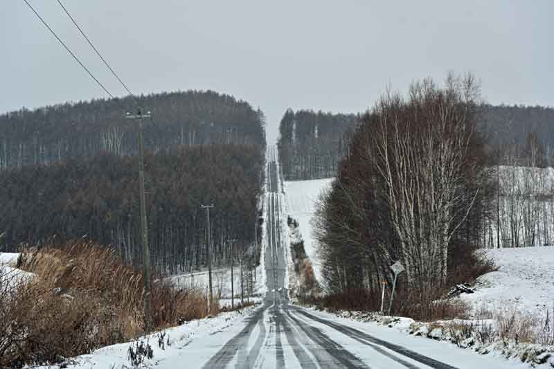 就実の丘は旭川空港からまっすぐの道が続いていると思っていましたが、途中で少しクランクがあります。 帰りに見るとその場所は見えずジェットコースターのような道が続いていました。