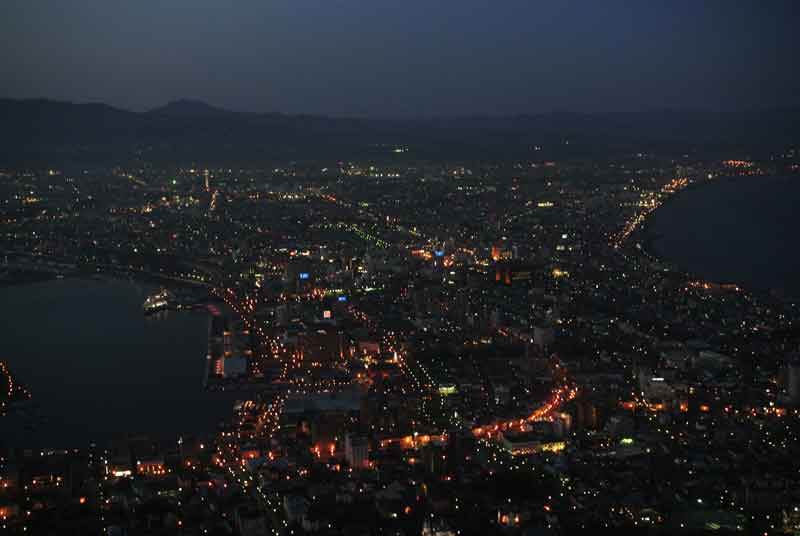 世界三大夜景の一つとも言われている函館山からの夜景です。 左右の海で狭まった所が綺麗に見える理由でしょうか?