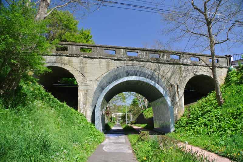 緑道を歩いてみるとかつてのトンネルの跡がそのままになっていました。 上は普通の道路です。