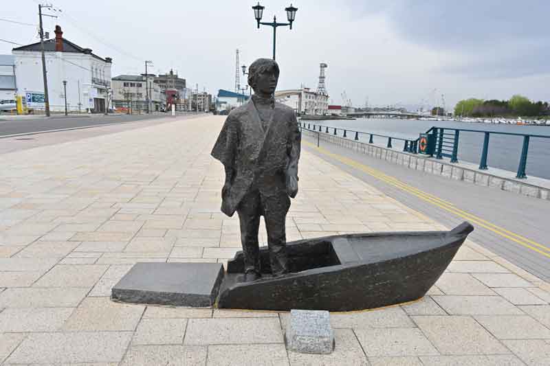 同志社大学の創立者で鎖国の禁止を破ってでも海外見分をしたいと、ここから小舟で沖に出てアメリカの船で密出国をしたので、ここで小舟に乗ったブロンズ像があります。