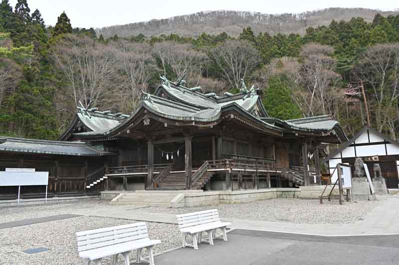 本殿と拝殿を一緒に撮影するために斜めから撮影してみました。左にあるのは本殿で右側に拝殿があります。この神社は1445年に建立された歴史のあるものですが、本殿と拝殿は再建されたものです。