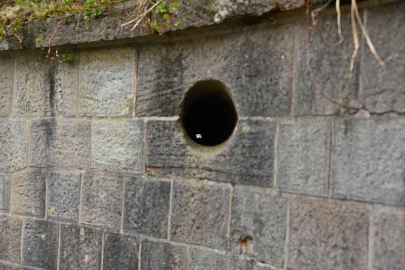 2つ並んだ砲台が三ブロックあり、その間の連絡をするための伝声管(単純な穴ですが)があり今もつながっていて隣の灯りが見えます。