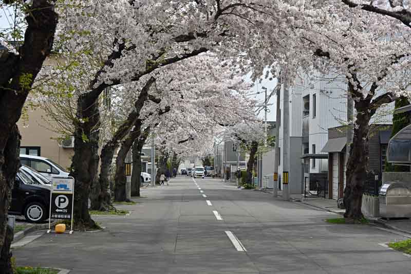 函館市電の走っている道路から奥の方にくると少しサクラの密度が低くなっています。