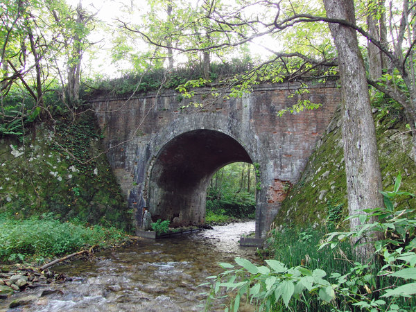 先ほどの案内板のあった場所から湖側に降りられる場所があり、そこから撮影した小笹川の橋梁でレンガ造りのアーチ橋です。