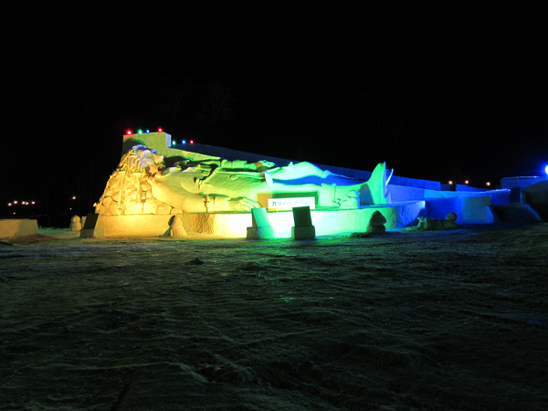 こちらは氷像ではなく雪像で自衛隊の方が作成したものでかなりの高さがあり、雪の滑り台も作られています。