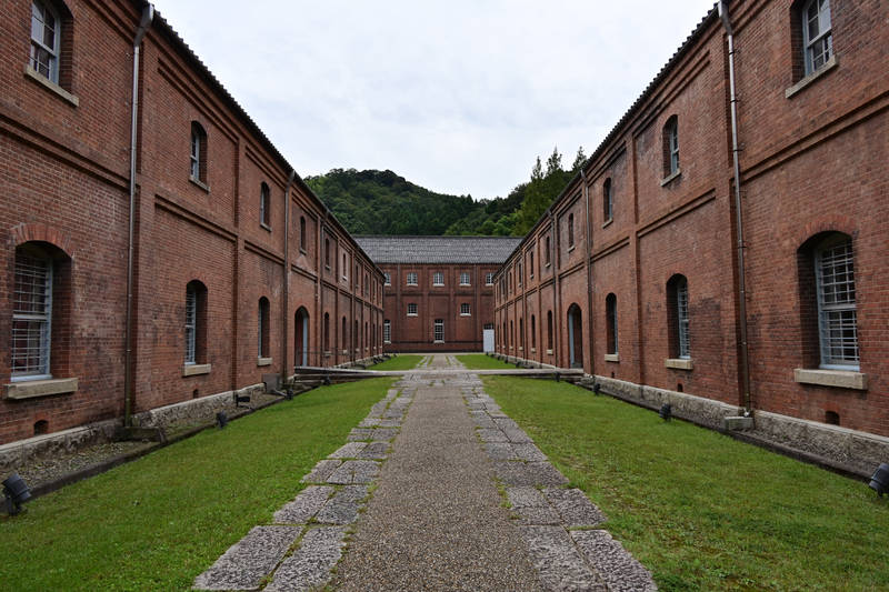 3棟並んでい倉庫の間から撮影してみました。 同じような造りの倉庫なのでこういう風に撮影してみると遠近感のお手本のような構図になりました。