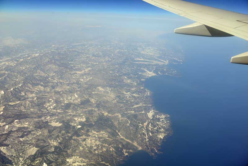 羽田から帯広への便は三陸海岸の付近で太平洋に出ます。真下に北山崎のある半島(四角い)のが見えてきました。