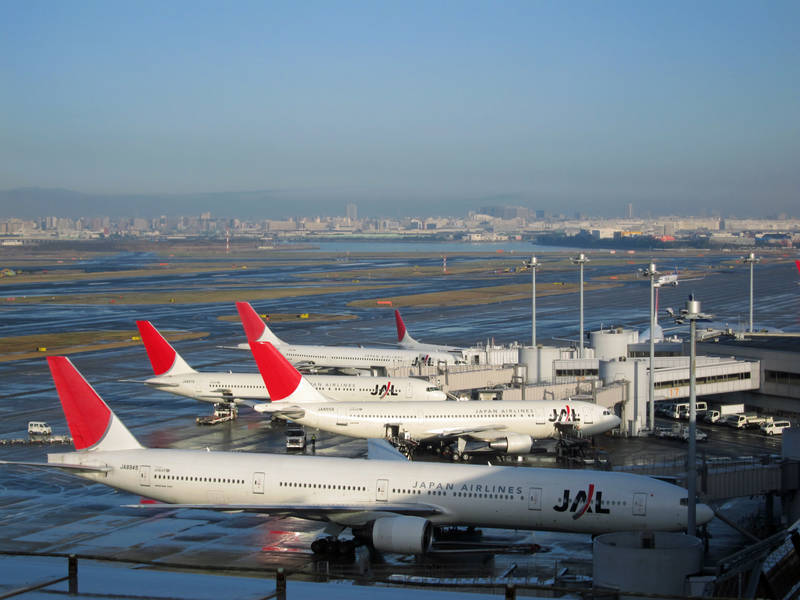 羽田の第一ターミナルはJALグループの機材が多く一番手前の777が奥に並ぶ767や737より物凄く大きいというのがわかりますね。