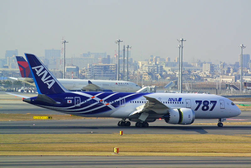 羽田空港のA滑走路に787の2号機が着陸して来ました。 これも特別塗装機ですね。