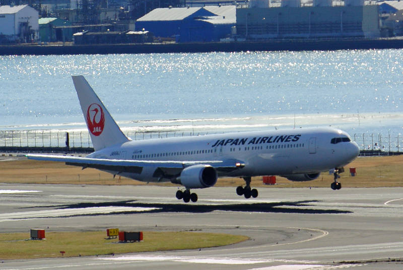羽田空港のA滑走路に着陸してくるJALの767で、新塗装になっています。