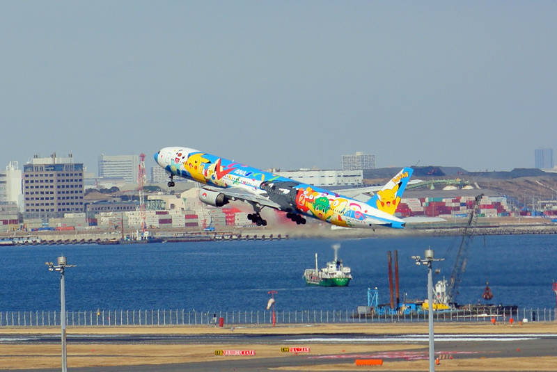 全日空の子供に人気のあるポケモンのイラストをあしらった機材です。 747ジャンボを使ったものもあります。