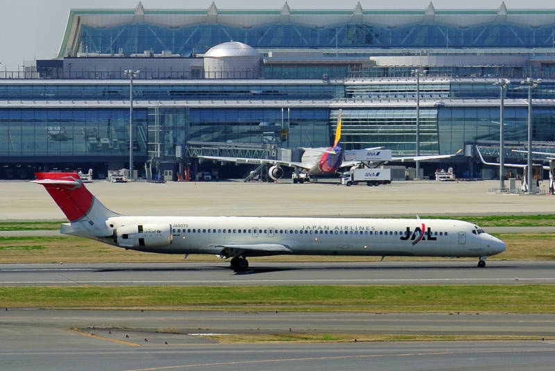 MD90シリーズは横から見ると本当に細長い機材だということが良くわかります。 JASで登録された機材がJALに引き継がれています。