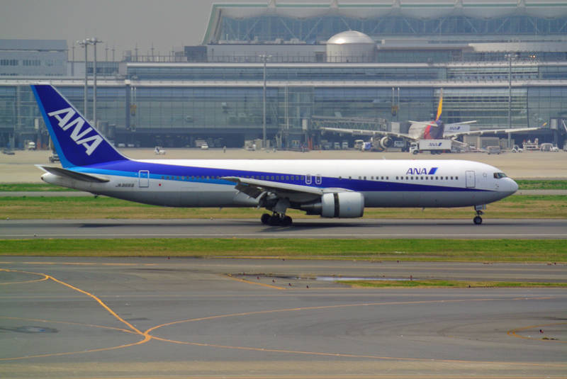 羽田空港のT1からA滑走路に着陸してきた767を撮影しました。