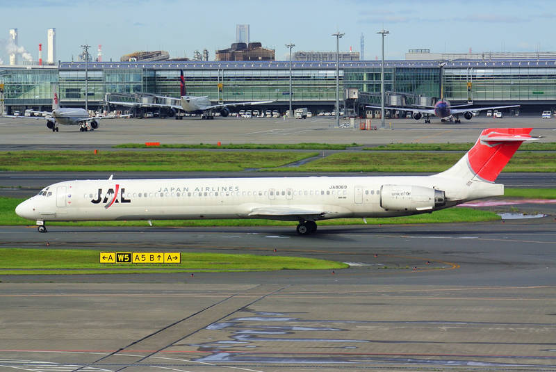 JASから移籍した旧塗装のMD-90が離陸のために移動していきます。 だいぶ機数が少なくなってきました。