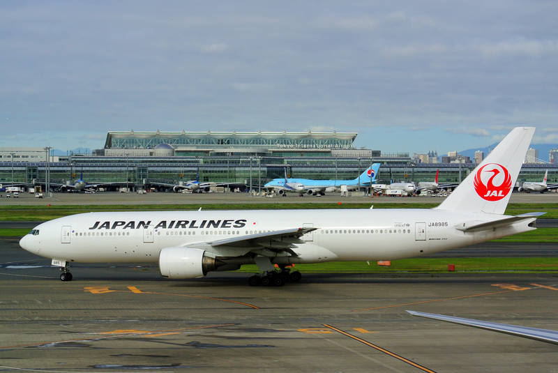 新塗装に更新された767が離陸のために誘導路に入る所です。