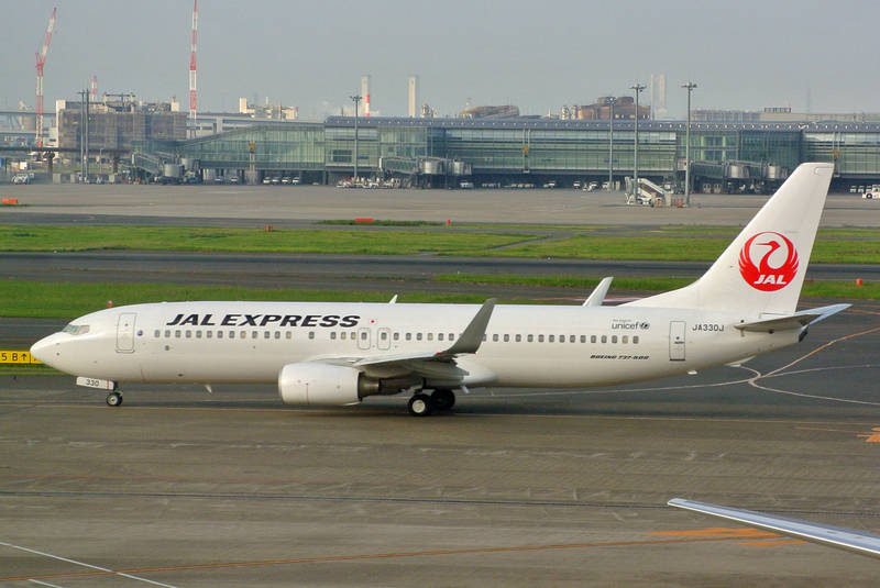 JAL Expressの機材で新しい鶴丸塗装に更新された機材がエプロンから出発していきます。