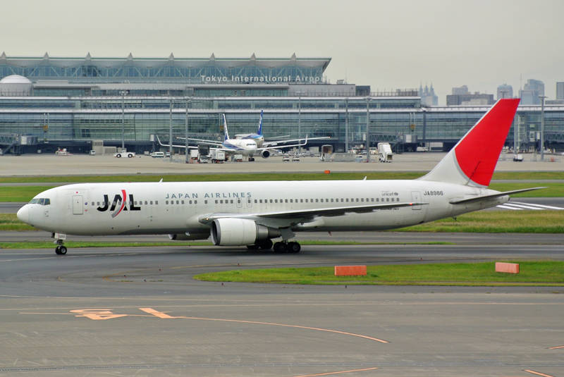 JALの中型機のメインの767が離陸に向かって誘導路を進んでいきます。塗装はまだ旧のままです。
