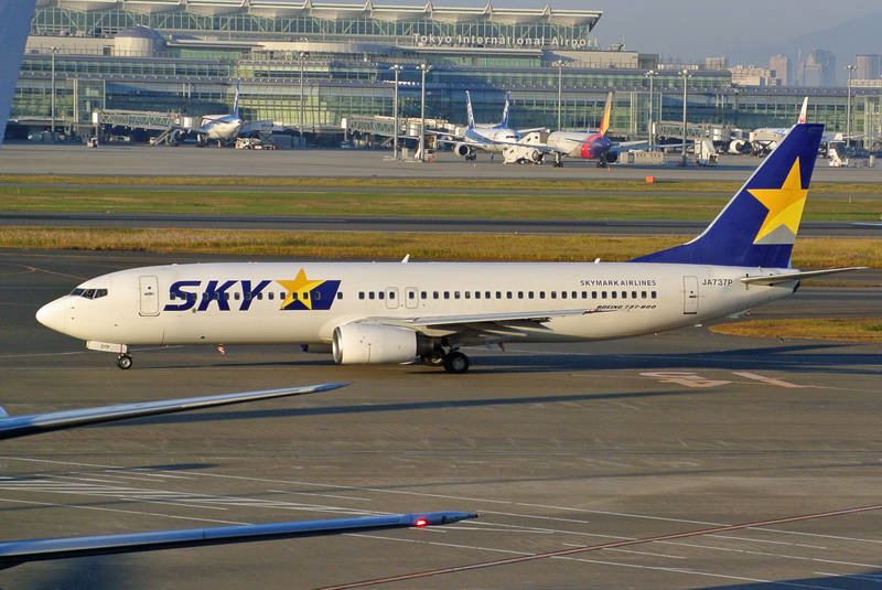スカイマークの比較的古い737です。ダッシュ800はNG(New Generation)ですがウィングレットがない特殊仕様です。
