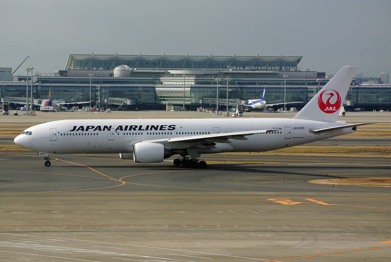 新塗装になったJALのトリプルセブンが誘導路を移動していきます。 新塗装の方が綺麗ですね。
