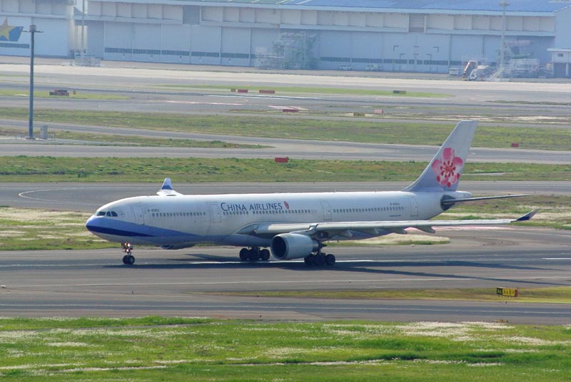 チャイナエアラインのエアバス機で垂直尾翼の花が特徴です。