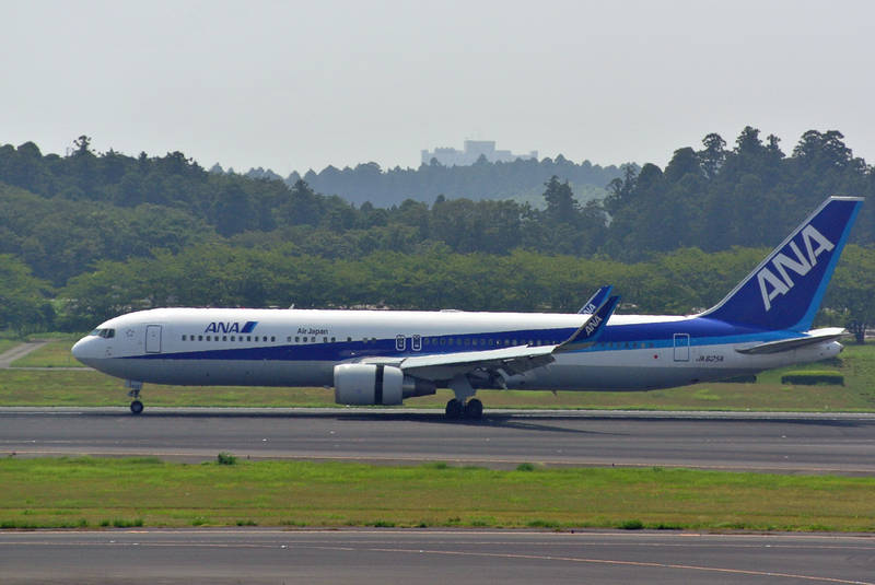 ANAの767の着陸シーンです。 ANAの767はウィングレットが尾翼と同じ塗装なのが特徴ですね。