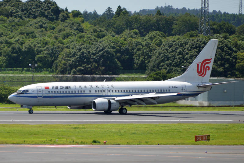エアー・チャイナの小型機が成田空港に着陸して逆噴射で減速中です。国際線ですが小型機ですね。