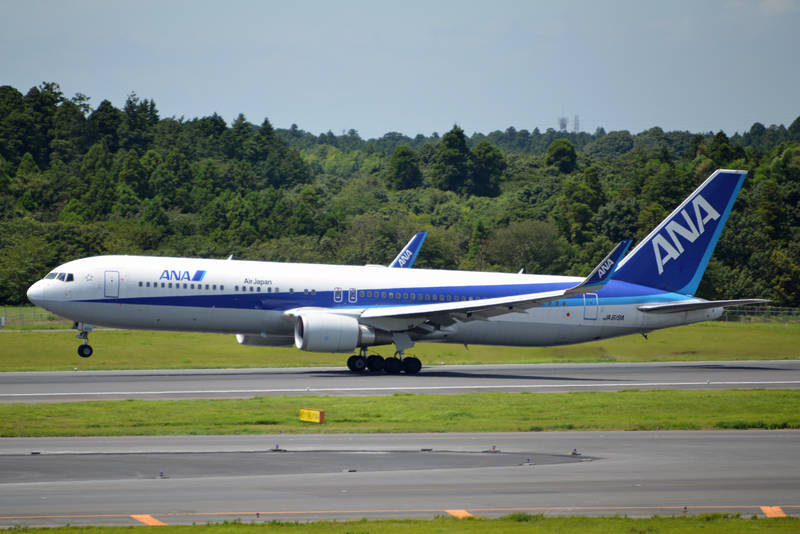 ウィングレットにもANAの文字が入っている767でER(Extended Range)の着く長距離飛行が可能なタイプが離陸していきます。