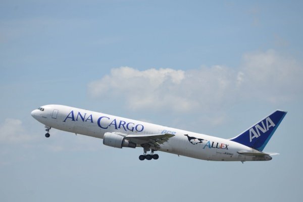 ANAの貨物機ですが、昔は旅客機で窓をつぶした後が確認できます。