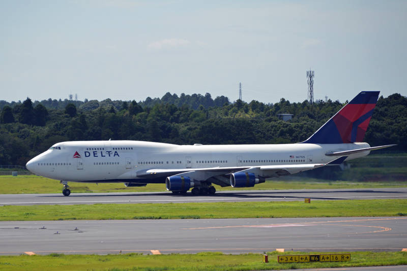 デルタ航空のジャンボジェットが成田空港から離陸していきます。