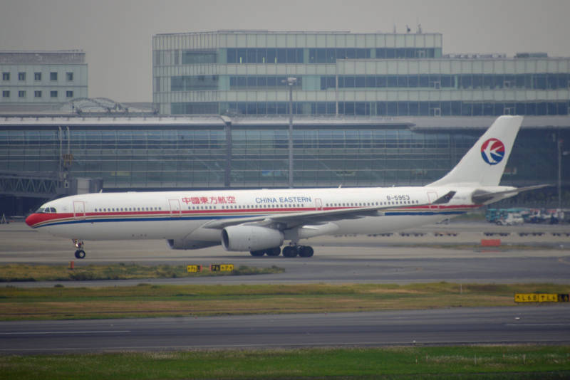 中国東方航空の機材で、国際線ターミナル前を移動していきました。