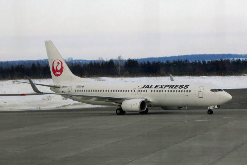 とかち帯広空港に到着してスポットに入って来たJALの737です。これに乗って羽田に帰ります。