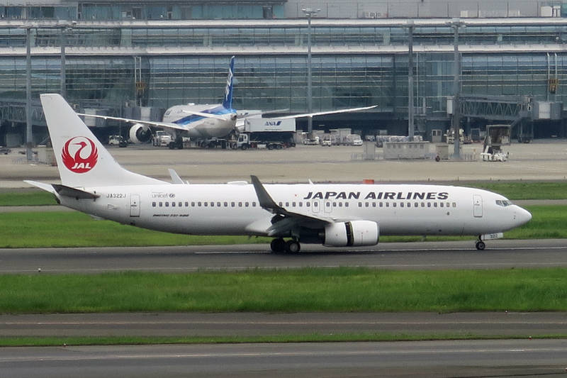 羽田空港のA滑走路に着陸して逆噴射中の737で、まだJAL Expressのままの塗装です。