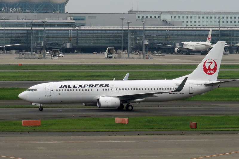 誘導路を南に向かって移動していくJALの737です。離陸の為の滑走路に向かっているのでしょう。まだ、JAL Expressのままですね。