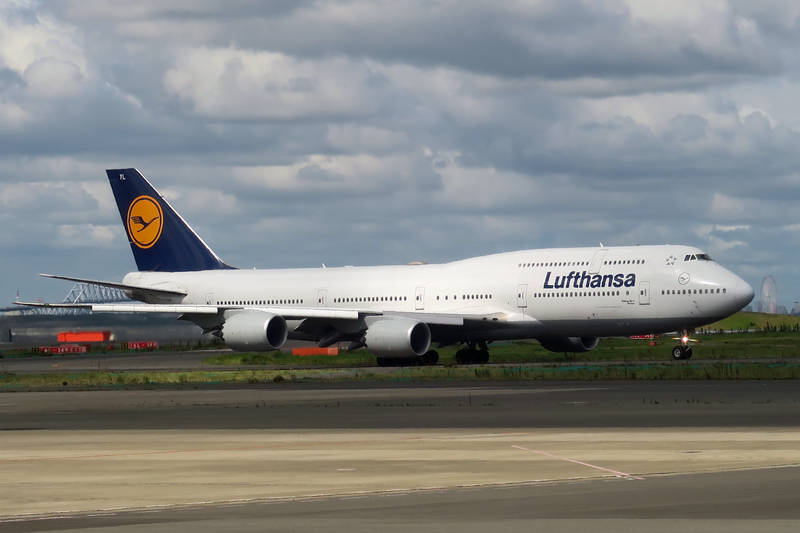 離陸に向かって誘導路を進んでいるときにルフトハンザの747が近くを通っていきました。