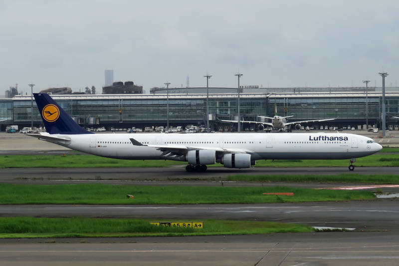 ルフトハンザの大型機の着陸シーンで、A340は4発機ですが全部のエンジンが逆噴射されますね。 同じエアバスでもA380は片翼で一つのエンジンしか逆噴射しないので4発機の逆噴射を見る機会も減ってきています。