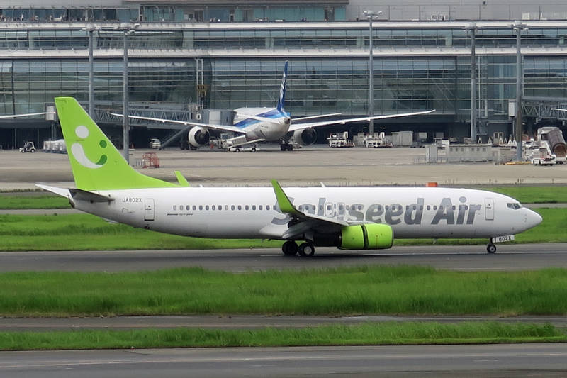 ソラシドの737が着陸してきました。滑走路の両側の緑より薄い黄緑がマッチしていますね。