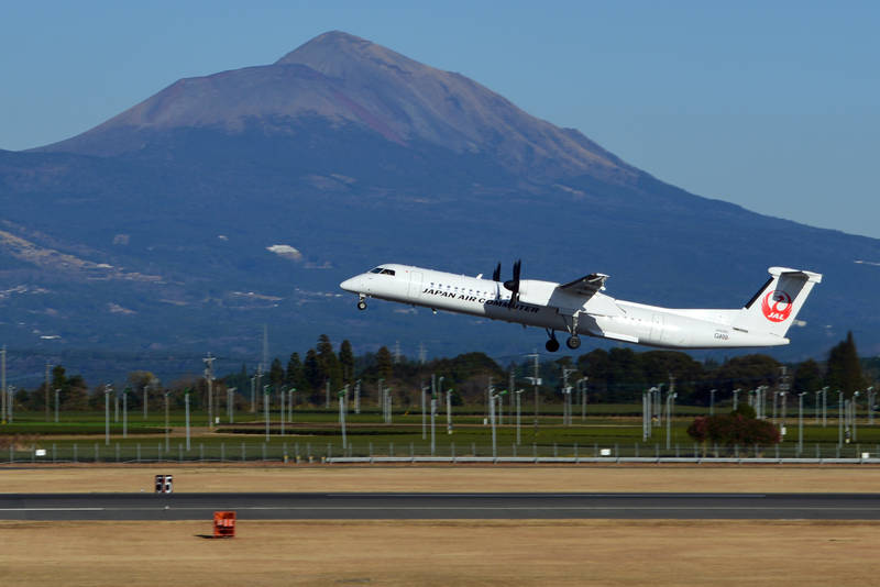 与論島からの帰りで2017年の初フライトはこれでした。鹿児島空港に到着後に羽田への便の乗り継ぎに時間があったので展望デッキで乗って来た飛行機が次の目的地に向かって離陸する所を撮影しました。
