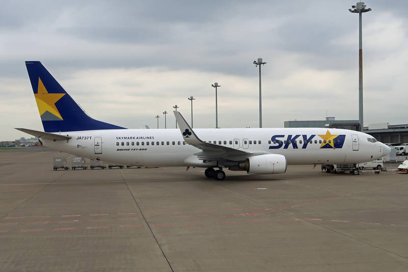 とかち帯広空港への便に搭乗してから撮影したSKYMARKの737でウィングレットにクローバーがついています