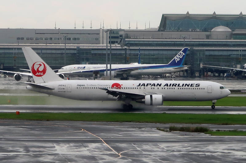JALのJapan Endless Discoveryマークの入っている機材が着陸して逆噴射しています。