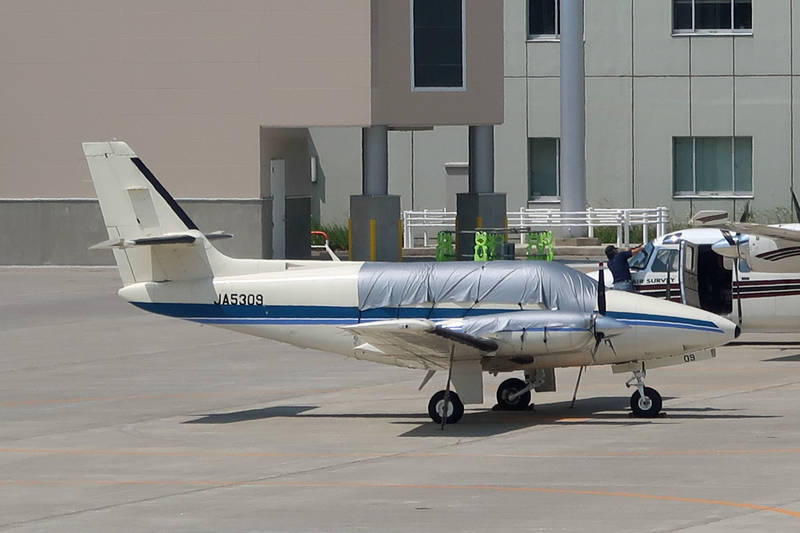 機内から撮影したもので個人所有のセスナが駐機していました。