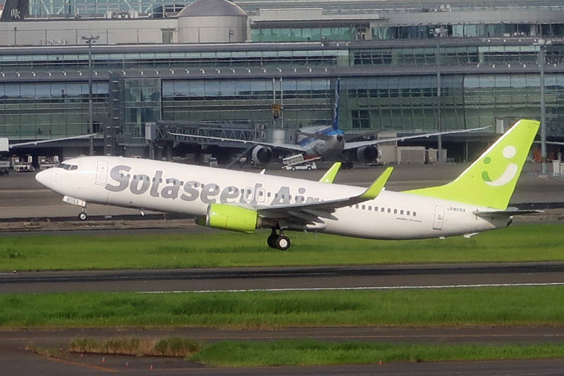 ソラシドの737が羽田空港のA滑走路を離陸していくところ