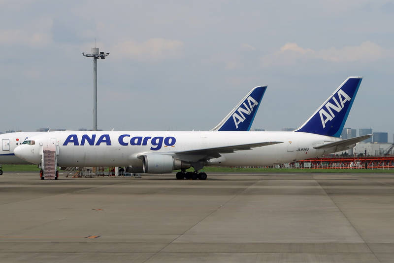 ANAの貨物専用機に改造された767で昔は旅客機として運用していました。