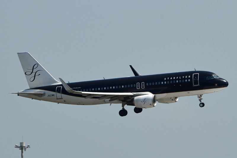 北九州ベースのスターフライヤーの羽田空港B滑走路への着陸シーンです。少し横風が強くなったのか右側にバンクしています。