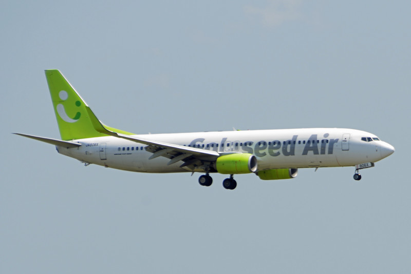 羽田のB滑走路にアプローチするソラシド・エアーの通常塗装機