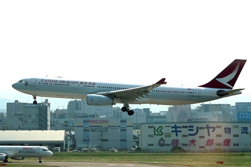 福岡空港に着陸するキャセイ・ドラゴンの機材です。 名前からわかるようにキャセイ・パシフィックの子会社です。