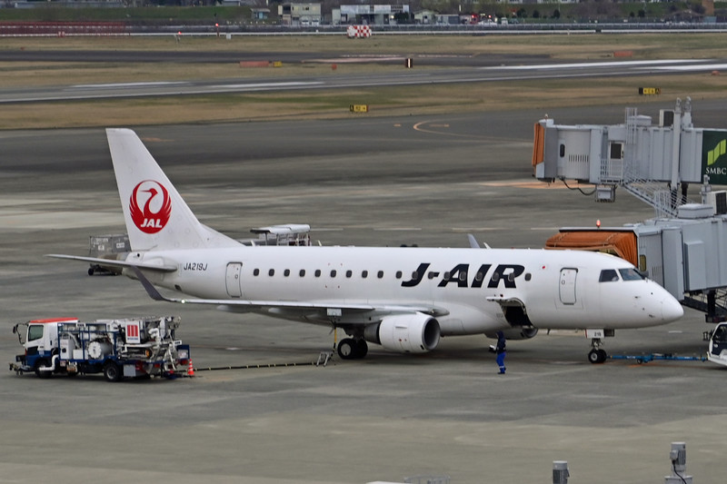 大阪国際空港伊丹はJ-AIRの本拠地なのでたくさんのJ-AIR機を見る事が出来ます。羽田ではバス搭乗がほとんどですが、ここではPBBでの搭乗です。