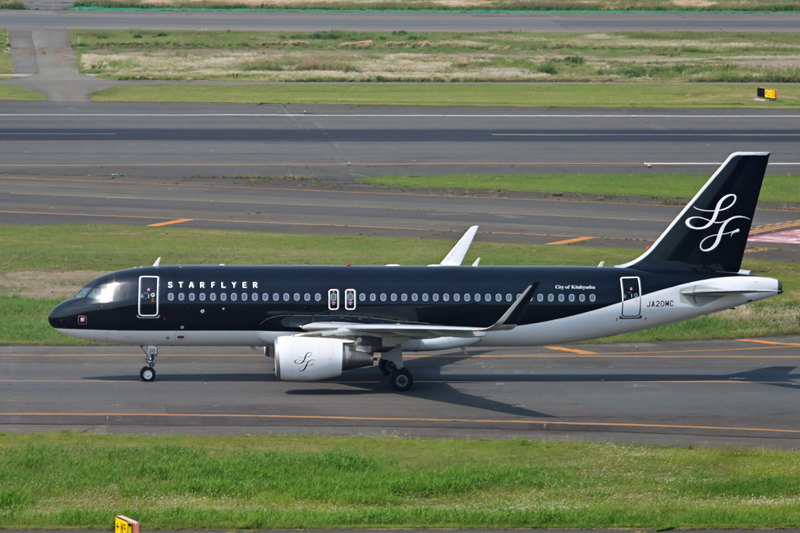 旅客機では珍しいブラックボディのスターフライヤーが誘導路を進んでいきます。